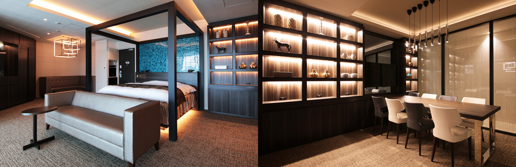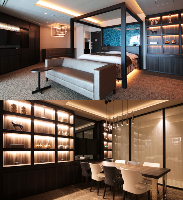 煌びやかなアクセントと落ち着きのあるダークトーンでコーディネートされた、ラグジュアリーフロア(7〜8階)