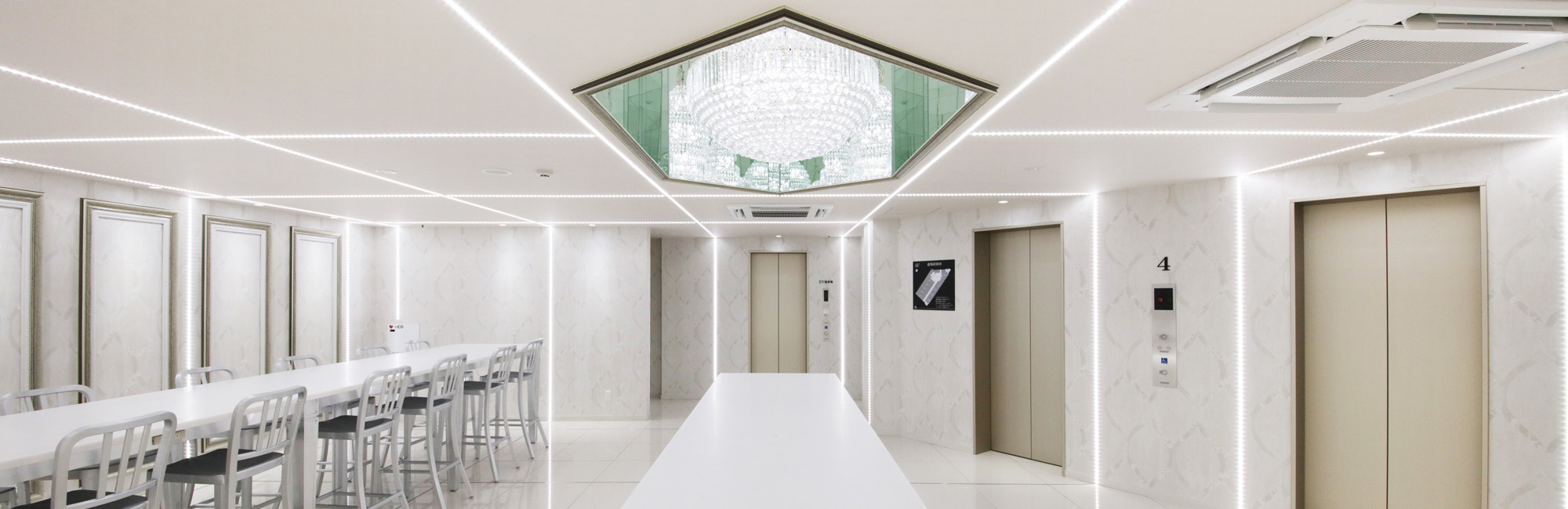 まるで万華鏡の様に表情を変える演出でお客様をお迎えいたします。